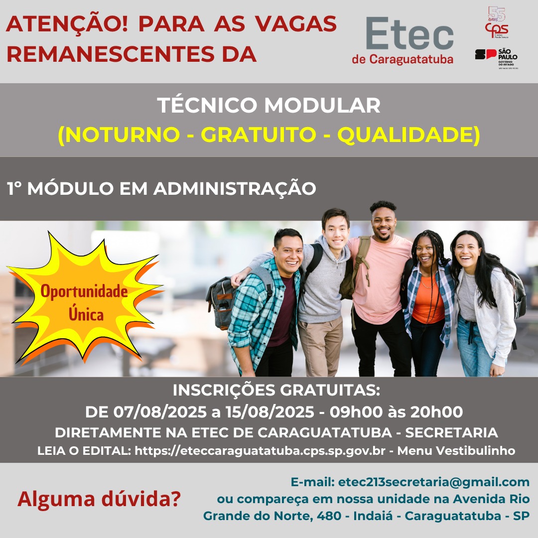 CARAGUATATUBA E UBATUBA Edital =213/07/2025 – Artes – Curso: Recursos Humanos Integrado ao Ensino Médio – MTec–N – Caraguatatuba – Período de Inscrição: 20/06/2025 à 23/07/2025 Edital =213/08/2025 – Biologia – Curso: Recursos Humanos Integrado […]