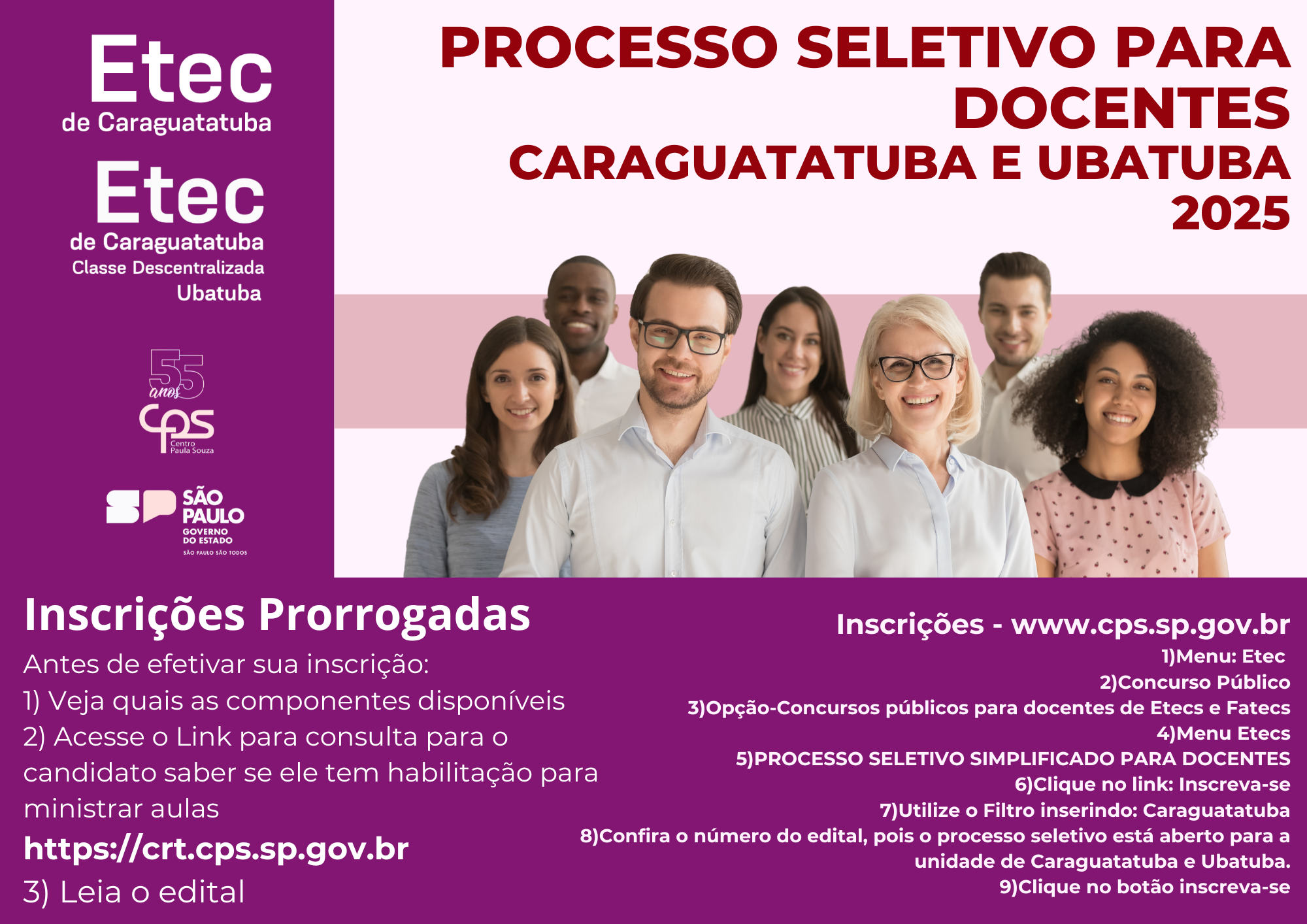 INSCRIÇÕES ABERTAS – CARAGUATATUBA E CLASSE DESCENTRALIZADA DE UBATUBA – CONFIRA AS DATAS DE CADA COMPONENTE CURRICULAR